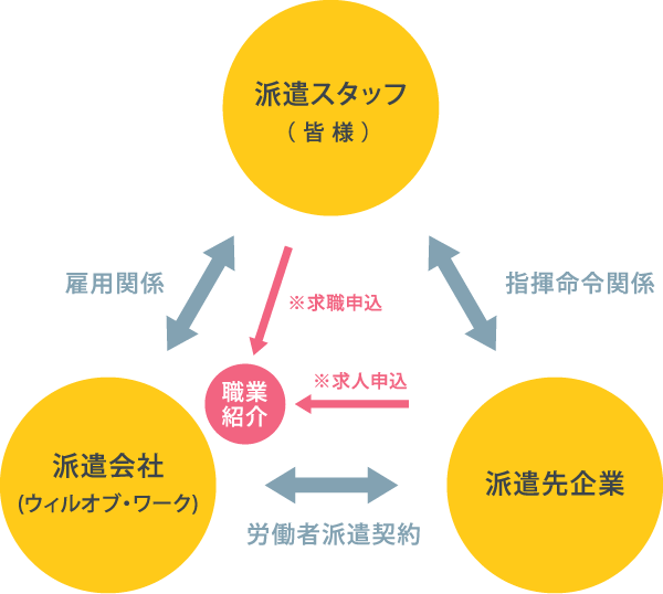 あらかじめ、派遣先企業に直接雇用されることを予定して一定期間派遣スタッフとして就業した後、双方の合意があれば、派遣先企業の直接雇用に切り替わる派遣システムです。